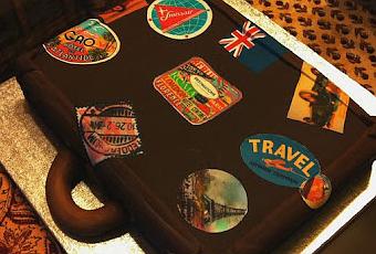 Por ultimo, recorté, mas bien me recortaron ya que no llegaba a tiempo los sellos de fondant y los pegué con un poco de agua. Increíble, todo comestible.Tuve que ajustar las cantidades del bizcocho a la medida del molde que era un poco mas grande que el de la receta, aun así tampoco era una maleta enorme como las que acostumbra a facturar mi hija, sin embargo, lo suficiente para meter dentro las cosas importantes de la vida que son las que realmente nos acompañan por lejos que viajemos.