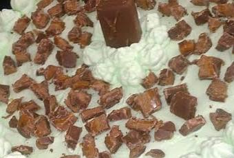 Cubrimos completamente la tarta con mas nata y decoramos con ayuda de una manga pastelera con churritos todo alrededor. Troceamos los 6 Mars restantes de los 20 inicales y los repartimos por la superficie ...