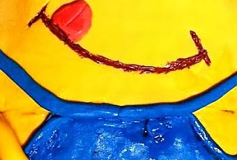 14. Para el negro de la boca y de las gafas utilizamos la misma nutela, y nos ahorramos un colorante.