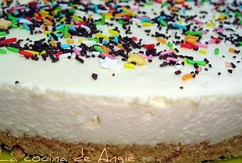 - Poner una base de bizcocho genovés (o galletas con mantequilla) en el molde; cubrir con la mezcla y dejar en la nevera de un día para otro. Decorar con cacao en polvo o con fideos de chocolate.