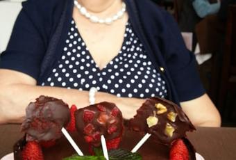 - chocolate de cobertura, barquillos,fresas,piruletas