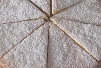 Preparación:. En un bol mezclar la con la mantequilla blandita, el huevo, el azúcar, la sal y la corteza de limón. Amasar desde el centro hacia afuera, mezclando bien todos los ingredientes hasta conseguir una masa dúctil. Formar una bola con la masa quebrada, envolver en papel film y dejar reposar en lugar fresco o e la nevera durante 2 horas. Dividir la masa en dos y extender en una superficie enharinada hasta formar dos círculos de 22 cm. de diámetro cada uno. Poner en la bandeja de horno, forrada con papel. yo coloco un aro de pastelería para dar mejor forma. Cocer de 8 a 10 minutos, hasta que se doren ligeramente. Una vez estén hechos retirar del horno y un círculo todavía caliente lo cortamos en 8 porciones. El otro lo dejamos entero y todo ello en una rejilla para que se enfríen totalmente En una bandeja poner un aro de pastelería y colocar la masa azucarada ya horneada y fría dentro (claro está la base entera) y reservar. Remojar las hojas de gelatina en agua fría durante por lo menos 10 minutos. Calentar la leche y diluir en ella las hojas de gelatina, añadir la crema ganache y mezclar bien. Seguidamente agregar la nata de textura espesa que deberá estar bien fría, mezclar cuidadosamente y verter la crema obtenida sobre la pasta azucarada. Nivelar bien y dejar en la nevera hasta que esté bien solidificada. Retirar el molde. Colocar las porciones de masa azucarada y cubrir generosamente con azúcar glas justo en el momento de servir. De esta forma la masa queda crujiente