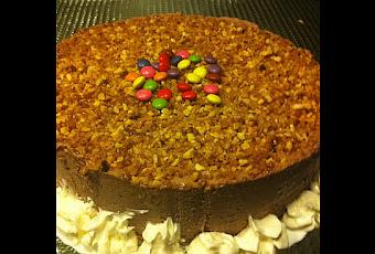 Hacer la cobertura, dejar reposar nevera.Decorar. En este caso con crocanti y lacasitos