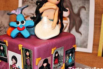 Sandra me pidió que le hiciera una tarta como esta: Tarta muñeca Gorjuss con fondantpero con la mitad de raciones.Me lo puso relativamente fácil al pasarme por WhatsApp 4 fotografías de las 'muñecas favoritas' de su sobrina Martina.Nada más ver las fotos, lo tuve claro, esta sería la elegida.