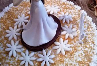 1 k. de Fondant blancomoldes para hacer flores y corazones1 bote de azúcar doradapegamento para fondant