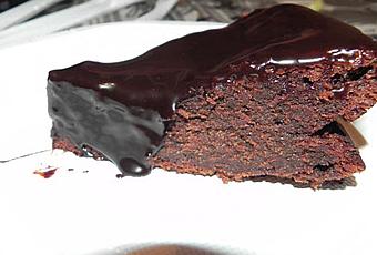 La tarta en principio no tiene un aspecto muy bonito, incluso es normal que se cuartee. Aviso!! No os asusteis si os pasa como a mi, cuando la saqué del horno había subido casi hasta el borde del molde (cosa que me sorprendió ya que no lleva levadura) y al rato de estar enfriando había bajado hasta la mitad otra vez jejejeje. Se deja enfríar, y si la dejais en la nevera de un día para otro está mucho más buena. La podeis decorar al gusto, con azúcar glass por encima o cacao, o lo que se os ocurra, como mis amigos son auténticos chocoadictos (sobre todo David) yo le puse una salsita de chocolate negro por encima... parece mucho chocolate pero como el mismo dijo: "Es la cantidad justa de chocolate!!!" jejeje