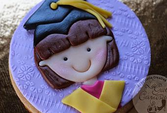 Esta es la tarta que le hicimos a Estefanía para su graduación, sus padres querían darle una sorpresa en ese día tan importante. Después de un esfuerzo tan grande una dulce recompensa. Como complemento de la tarta se pueden regalar a los invitados unas galletas de graduación. Felicidades Estefanía, mucha suerte en tu aventura como enfermera.
