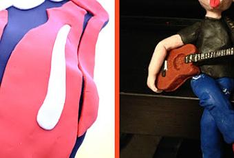 Para el 40 cumpleaños, los amigos del homenajeado nos encargaron que realizaramos una tarta para él. Así que como sabíamos que era un fan absoluto de los Rolling Stones quisimos que figuraran de alguna manera en su tarta. El cumpleañero toca la guitarra en el grupo Gominola Spa.Así que quisimos fusionar los dos conceptos en su tarta con de la lengua del logo de los Rolling y para que el muñeco fuera acorde también le pusimos sacando la lengua junto con su guitarra Al menos por lo que nos contaron sus amigos la tarta estaba buenísima (no sobraron ni las migas) y el muñeco encanto al cumpleañero.