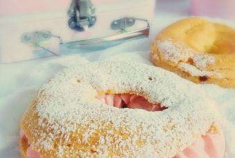 - Una vez que estén fría nuestras ruedas de pasta choux, las cortamos a la mitad con un cuchillo de sierra.