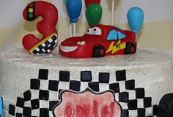 Esta vez os traigo una tarta de un niño que cumplía 3 añitos Daniel y como no ¡¡¡ un simpático coche que a todos les encanta Rayo Macqueen.