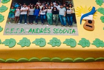 Y le pegué el papel de azucar y terminé de decorar, asi quedó, con la foto de los profes del cole, los colores y el escudo.