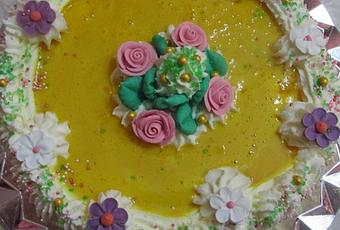 Le ponemos unas flores de azúcar y bolitas de colores pequeñas.