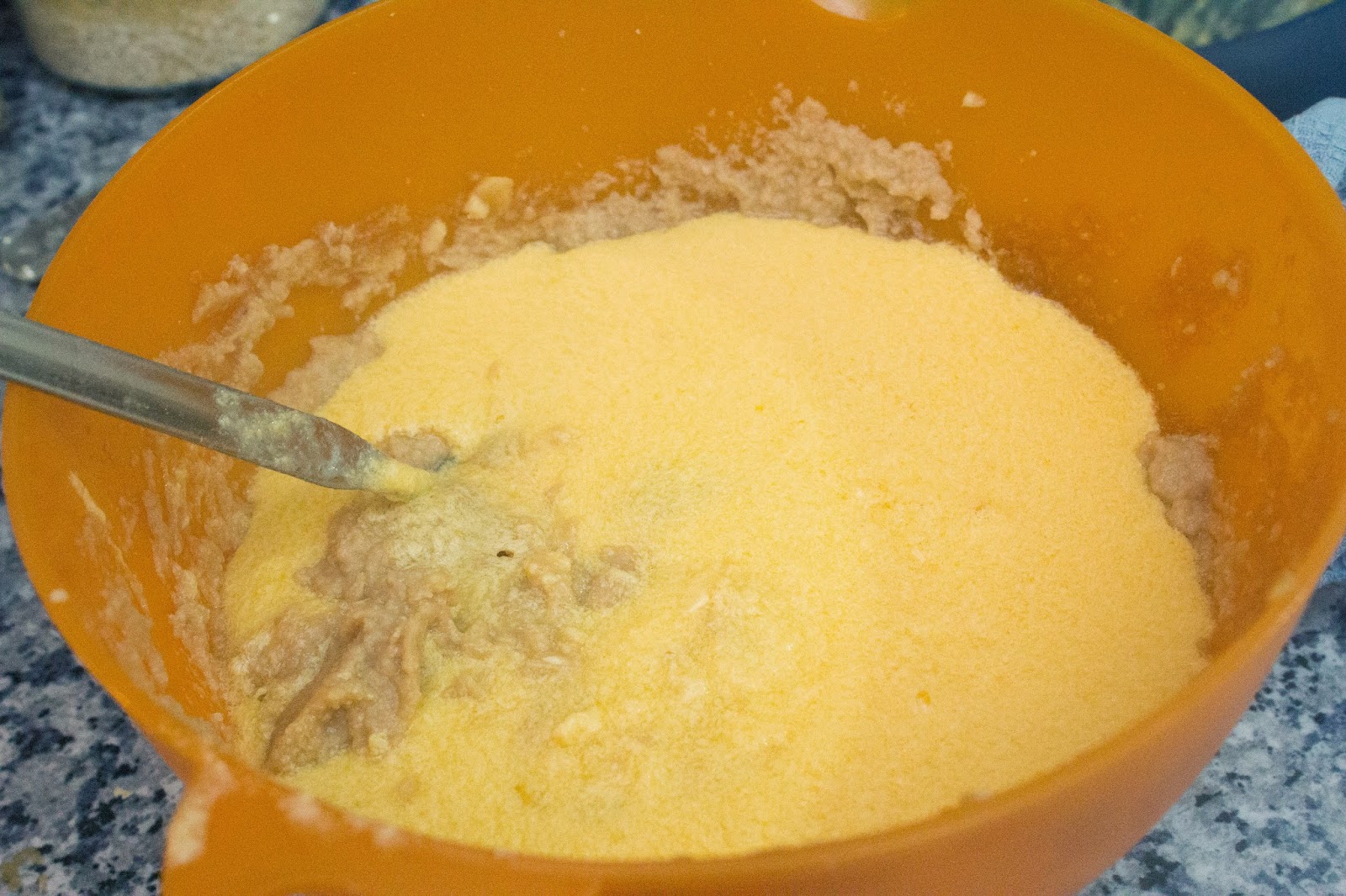 Mézclalo todo bien con un tenedor, machacando poco a poco la mezcla hasta que quede una masa esponjosa.