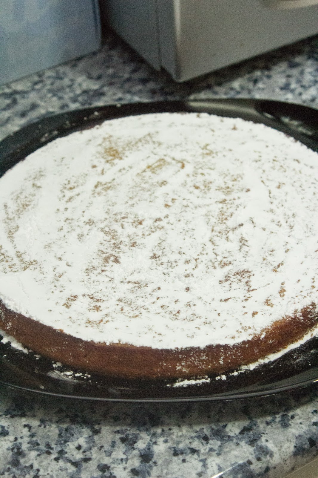 Cuando esté fría espolvorea azúcar glass por encima hasta cubrir toda la tarta.