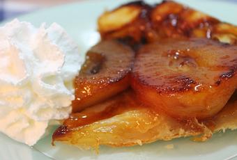 La tarta tatín se suele hacer tanto en opción salada con tomates (misión pendiente), berenjena o cebolla, como dulce, con melocotones, piña… Yo ya he hecho la de la manzana y he decidido seguir probando, ya que me encantó. Es muy fácil de prepararla y sale un postre güenísimo!! Publicaré sin falta la receta de la de manzana que es seguir el mismo proceso que el de aquí, substituyendo las peras por manzanas.