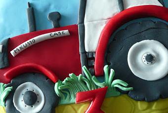 En esta ocasión la tarta es de lo más sencilla, bizcocho de yogurt de color verde, cubierto de nutella y forrado con fondant, el tractor esta hecho con la técnica del puzzle ( muy sencilla y vistosa).