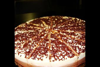 Ir haciendo esto con cada uno de los chocolates : Deshacer en un cazo el chocolate. Añadir 1/3 parte de la mezcla de la nata y la leche, más 50 grs de azúcar y un sobre de cuajada (cocer según indica en el sobre). Sacar la tartera del congelador y ponerle encima la mezcla anterior.Volver a poner en el congelador mientras se prepara el siguiente chocolate. Verter la 2ª capa encima con cuidado y empezando desde el exterior. Una vez haya estado el tiempo correspondiente de la tercera capa en el congelador adornar con: Virutas de chocolate y poner a la nevera hasta el momento de comer.