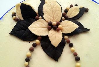 El adorno que he puesto es muy sencillo, he derretido un poquito de chocolate con muy poco de mantequilla y he hecho las hojas metiendo las en el congelador el día anterior cuando prepare la tarta.
