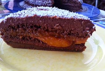 - Encima de la primera placa untamos una capa de chocolate y la tapamos con la segunda placa. Untamos la segunda con la mermelada de fruta y la cubrimos con la tercera.