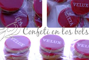 En este caso eran unas galletas de mantequilla con fondant roja y la imagen de la marca Velux