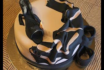 Como el modelo de zapato era para salir de noche se lo hice negro y lo adorne con una flor en beige que hiciese juego con el foulard a dos tonos que puse en el otro lado de la tarta y es que ¿quien no lleva un foulard para abrigarse el cuello a la vuelta a casa de madrugada?.