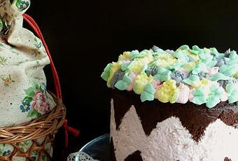 Es una tarta de cacao y frambuesas con un corte en zig zag, por cambiar de rutina. La decoré con flores rusas ya que quería estrenar mis boquillas y así de paso practicaba un poco, pero veo que todavía me queda mucho que perfeccionar.