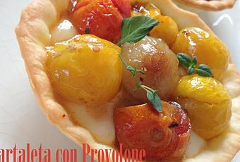 "Tartaletas con Provolone, Cherrys y Cebollitas Caramelizados".