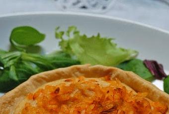 Una vez reposada la masa, la extendemos sobre una superficie enharinada y la cortamos en círculos de tamaño suficiente para forrar cuatro moldes de tartaleta. Cubrimos con papel sulfurizado y garbanzos (o similar) y cocemos las tartaletas al horno a 180 ºC durante 10 minutos. Transcurrido este tiempo, retiramos los garbanzos y el papel sulfurizado e introducimos el horno nuevamente para cocer las tartaletas durante 10 minutos más.