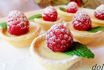 Ingredientes para 10 tartaletas:32 gr (1 sobre) de chocolate blanco 170cc. de crema de leche2 gr de gelatina en hoja10-12 frambuesasAzúcar glasPoner en remojo en agua fría la gelatina durante unos 10 minutos.
