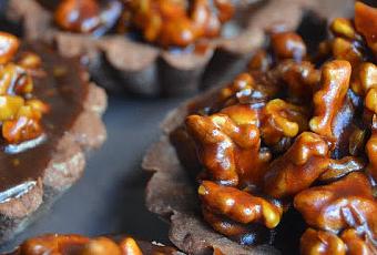 Ingredientes de las tartaletas de chocolate con nueces y caramelo (10 tartaletas):