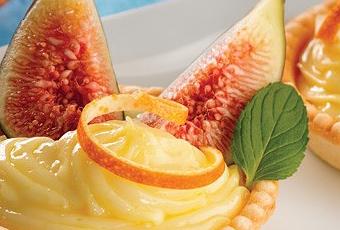 Preparación1. Precalienta el horno a 180 oC.2. En un procesador de alimentos incorpora las 2 tazas de harina, la cucharada del sustituto de azúcar y la mantequilla, añade el agua helada y forma una masa homogénea. Coloca en una bolsa de plástico y refrigera por lo menos durante media hora.3. Extiende la masa y forra cuatro moldes pequeños de tartaleta. Pon un trozo de papel encerado sobre la masa y agrega peso (puedes hacerlo con frijoles crudos).4. Hornea hasta que la masa esté firme, retira el papel y el peso que pusiste y hornea por más tiempo para que las tartaletas se doren.5. En una olla coloca la leche con el 1/3 de taza del sustituto de azúcar, adiciona los 50 g de harina y las yemas, y retira del fuego una vez que se haya formado una crema espesa.6. Distribuye la crema fría en las tartaletas y encima acomoda los higos cortados en cuartos.