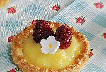 - 1 placa de hojaldre- 8 cucharadas soperas de lemon curd- 16 frambuesas- 1 huevo- mantequilla para engrasar o spray antiadherente