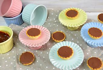 PREPARACION:Este postre es tan fácil de hacer como poner un poco de dulce de leche en cada tartaleta pequeña. Fundimos el chocolate, ya sea al baño María o en el microondas en modo descongelación, ponemos el chocolate fundido encima del dulce de leche hasta llegar casi al filo, lo metemos en el frigorífico para que el chocolate endurezca y ya lo tenemos listo.