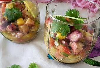 - Esta receta también es muy adecuada para servir en cucharitas para aperitivo, para ello solo hay que cortar los ingredientes en trocitos más pequeños