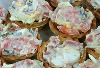 Hoy os enseño unas ricas tartaletas que preparé el día de Navidad. Espero que os gusten!- Preparar una salsa tártara con mayonesa, añadiéndole ketchup y mostaza al gusto. Mezclar con media cebolleta y 6 pepinillos picados.
