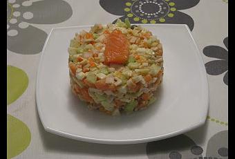 - Emplata con ayuda de un aro metálico y decora con la loncha de salmón que habíamos reservado.