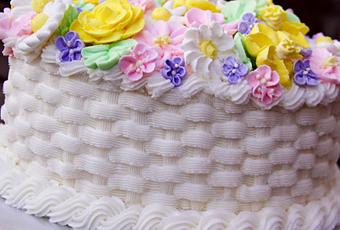 ¡Esta tarta me quita el hipo! ¡Todas las flores están hechas con azúcar! Y qué me dices de la paciencia necesaria para hacer el mimbre con cobertura…