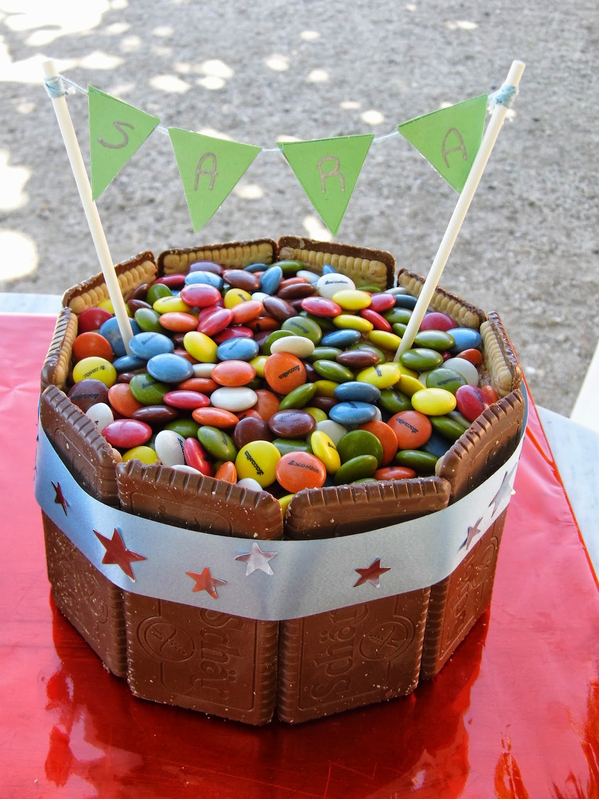 El montaje de las tartas es sencillo, rellenamos las capas de bizcochos alternando los buttercreams y terminando siempre con una buena capa de ellos, al igual que por los lados donde pegaremos las galletas como mejor queden a vuestro gusto, rellenaremos la parte de arriba de lacasitos a tope y estrecharemos un lazo o cinta bonita alrededor.