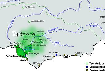 Se encontraba en Andalucía, principalmente en el Valle del Guadalquivir, dominó los enclaves mineros de Riotinto y Sierra Morena, extendió su influencia hasta el cabo de la Nao y estableció relaciones comerciales tanto con fenicios como con griegos.