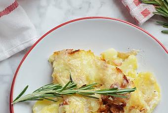 Este delicioso pastel de patata, bacon, cebolla, nata y queso, típico de la gastronomía francesa, se elabora con queso Reblochón. Por mucho que lo busqué no lo encontré y lo sustituí por queso enmental.