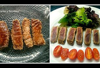 -4 rodajas grandes de ventresca de atún . Es casi un Kg, no llega. La ventresca es la parte de la barriga del pez más cerca de la cabeza y no contiene espinas- Sésamo o ajonjolí tostado, fácil de encontrar en sección de especias- Salsa de soja, fácil de encontrar en cualquier súper- Wasabi , es opcional, pero no es difícil de encontrar . En muchos supermercados grandes hay o tiendas chinas. Hay muchos formatos: En pasta o en polvo (se disuelve en agua, se humedece). Es un condimento japones verde, también usado para la elaboración del sushi, que es algo picante- Aceite- Ensalada para acompañar