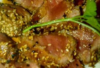en un recipiente se pone la soja y se sumerge el atún que debe de permanecer al menos 4 o 5 horaspasado este tiempo se reboza en el sésamo y se pone sobre la plancha se mantiene a si hasta que este al gusto aunque no suele quedar muy pasado para que quede rico
