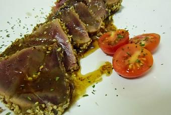 Por la parte que me toca pienso que incluso hemos llegado a desplazar algunas recetas nacionales exquisitas como el "atún encebollado" o el "atún en manteca" para poner en nuestros menús "el tataki, el sushi o el sashimi". Y como el cliente siempre tiene la razón aquí tenemos nuestro tataki de atún rojo de almadraba.