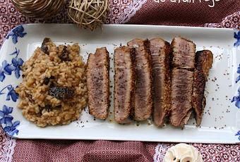 Esta vez acompañado de un arroz cremoso con manzana que nos sirve de acompañamiento o de cama para el tataki de atún.