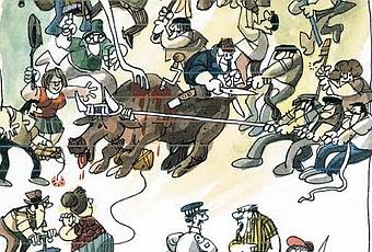 Manel Fontdevila nos muestra su mundo: Mundo catastrófico, Presidenta de Madrid, El uno y el otro, La dignidad y Haciendo justicia.