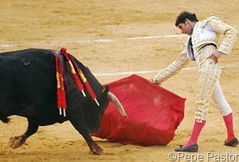 “El pico de la muleta es una de las trampas que se han “legalizado” y ahora se admite como si formara parte de la técnica. Antes se protestaba mucho en todas las plazas. En Madrid a José Fuentes le hicieron cortar toda la punta de la muleta pero como la seguía componiendo atravesada al citar siguieron protestando por el pico. El público y los cronistas vendidos tragaron definitivamente con este fraude en la época de Espartaco que además de citar con el pico adelantado, retrasaba la pierna que debería adelantar. Aquello fue una verdadera blasfemia pero a fuerza de repetir los cronistas como Molés y Palabrero que eso era la poderosa técnica del toreo, ya ves que la gente se lo ha tragado. Ahora ya casi no se protesta el abuso del pico.