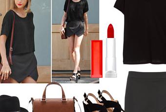 Siguiendo con Taylor Swift, hoy os presento otro de sus looks totalmente diferente al look del post anterior. De un estilo babbydoll a este otro más casual compuesto por colores oscuros y labios rojos. Espero que os guste y os sirva mi selección de prendas low cost para crear vuestros looks para este verano.