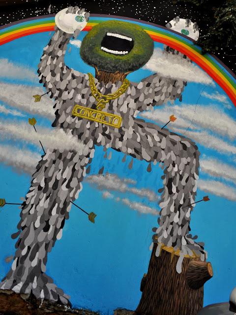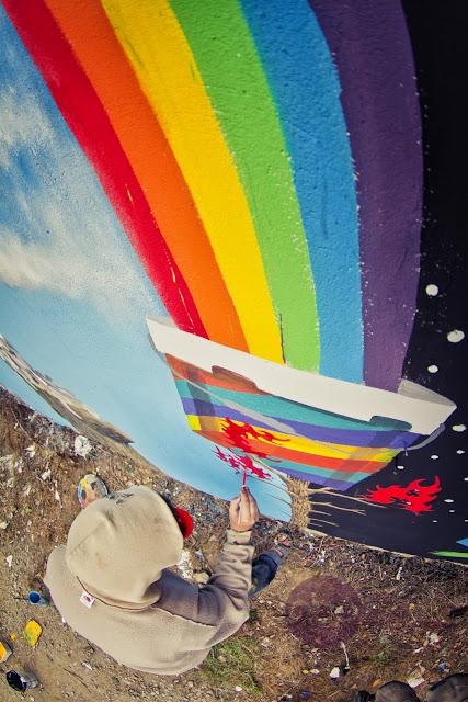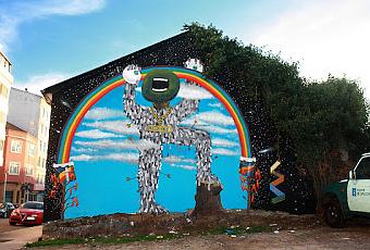 The urban artist TAYONE, from Vigo (Spain) has painted for Desordes Creativas which is becoming Ordes (La Coruña, Spain) in an open urban art museum worth visiting. In his intervention Tayone begs the question what if did not exist walls, facades, elements where paint? What would happen to street art? Would paint in the forests?. it would be harmful to nature, right?. You can learn more about the artist on his website www.ekathombre.blogspot.com