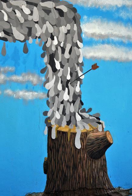 El artista urbano TAYONE, procedente de Vigo (España) ha pintado para el Desordes Creativas, que está convirtiendo Ordes (La Coruña, España) en un museo abierto de arte urbano digno de visitar. En su intervención Tayone nos plantea una pregunta ¿y si no existieran muros, fachadas, elementos donde pintar? ¿que sería de arte urbano? ¿pintaríamos en los bosques?. Un poco nocivo para la naturaleza si que sería ¿no?. Podéis conocer más del artista en su web www.ekathombre.blogspot.com