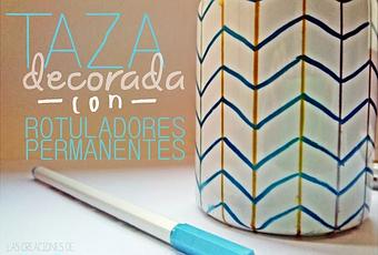 Primero limpié bien la superficie y pensé qué diseño quería hacer (algo facilito, porque hay que aguantar el pulso).Como quería hacer líneas rectas, me ayudé con tiras de washi. Repasé los laterales de éstas, y despegué las cintas.Después seguí decorando. Me han quedado algunos fallos, porque sin darme cuenta toqué antes de que secara.Previamente, había leído en varias páginas lo del tiempo de secado (antes de meterla en el horno). Como en todas no decían el mismo, la dejé secando más de 24 horas.El siguiente paso, era el horneado para fijar el rotulador.También leí varias cosas sobre éso, así que precalenté el horno a 180º, y dejé dentro la taza durante dos horas.Después dejé enfriar (hasta el día siguiente, ni la toqué).La conclusión es que el rotu se ha fijado. Si froto con el dedo no desaparece, pero cuando la uso y froto con el estropajo, algunas líneas van desapareciendo. Así que, el invento ha fallado :(¿Has decorado alguna vez porcelana?